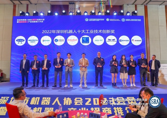 本次大会既是深圳市机器人协会一年一度的会员交流盛会,更是福田机器人产业招商推介大会,大会陆续揭晓了机器人应用落地最新进展、产业政策权威解读、最新技术成果等精彩内容。深圳市世椿智能装备股份有限公司荣获“深圳机器人十大工业技术创新奖”,世椿智能董事长时军伟先生登台领奖。